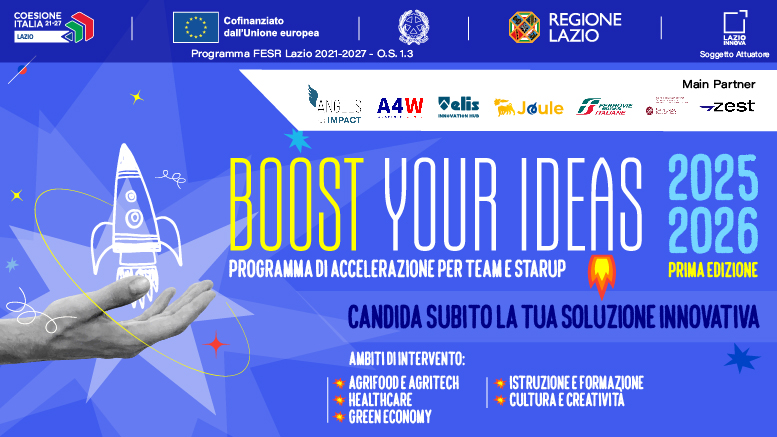 “Boost Your Ideas” è il programma promosso da Regione Lazio e Lazio Innova con l’obiettivo di sostenere la crescita di startup e team informali, accompagnandoli nel percorso che porta dalla nascita di un’idea imprenditoriale alla sua realizzazione sul mercato. L’iniziativa, giunta a una nuova edizione, si conferma un punto di riferimento per chi vuole accelerare l’innovazione e trasformare le proprie intuizioni in progetti concreti. Partner del programma sono grandi aziende, investitori e player dell’innovazione che mettono a disposizione competenze, know-how e opportunità di networking qualificato.